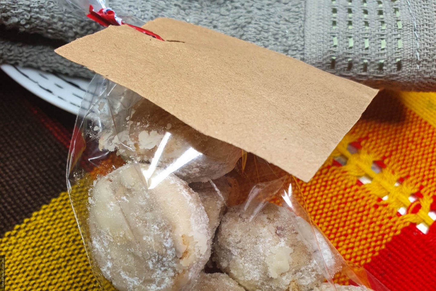 Bolsita de galletas preparadas con almendra, cubiertas con azúcar glass. Deliciosas.